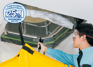 熱交換器を専用の薬剤でクリーニング。最後に抗菌・防カビ処理を施します。